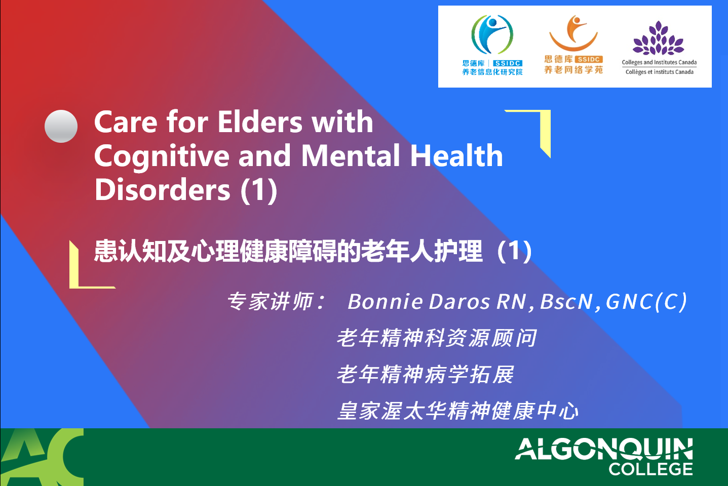 主要内容:本课程介绍康变老--综合考虑生理、情感、社交、精神和认知等多方面健康、提供以客户为中心的照护服务的相关内容,帮助养老照护人员认识到老年人健康变老的过程,需要注意的方面,影响的因素,以及照护人员如何才能为老年人提供最佳“以老年人为整体、为核心的养老照护服务”。