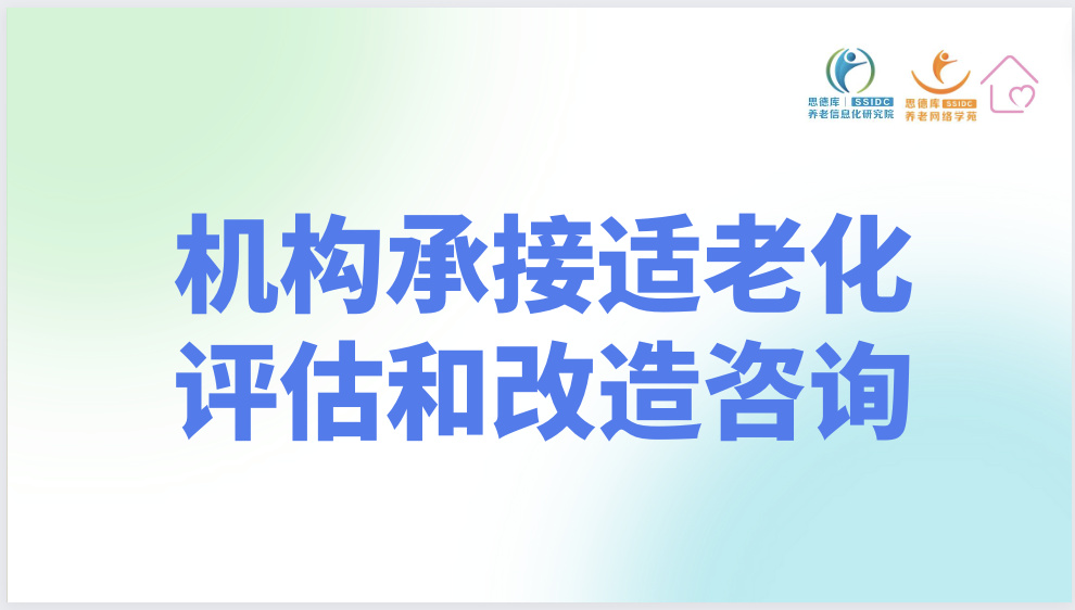 思德库研究院致力于为机构提供专业的适老化评估和改造的咨询服务,以助力机构更好地满足老年人群体的特殊需求。我们的团队拥有丰富的经验和专业知识,能够全面评估机构的现状,并提供个性化的建议,旨在提升服务质量、提高老年人生活的舒适度和安全性。