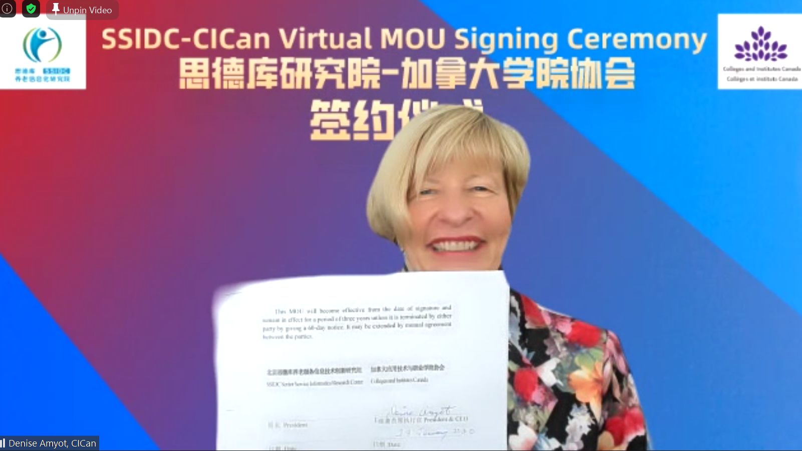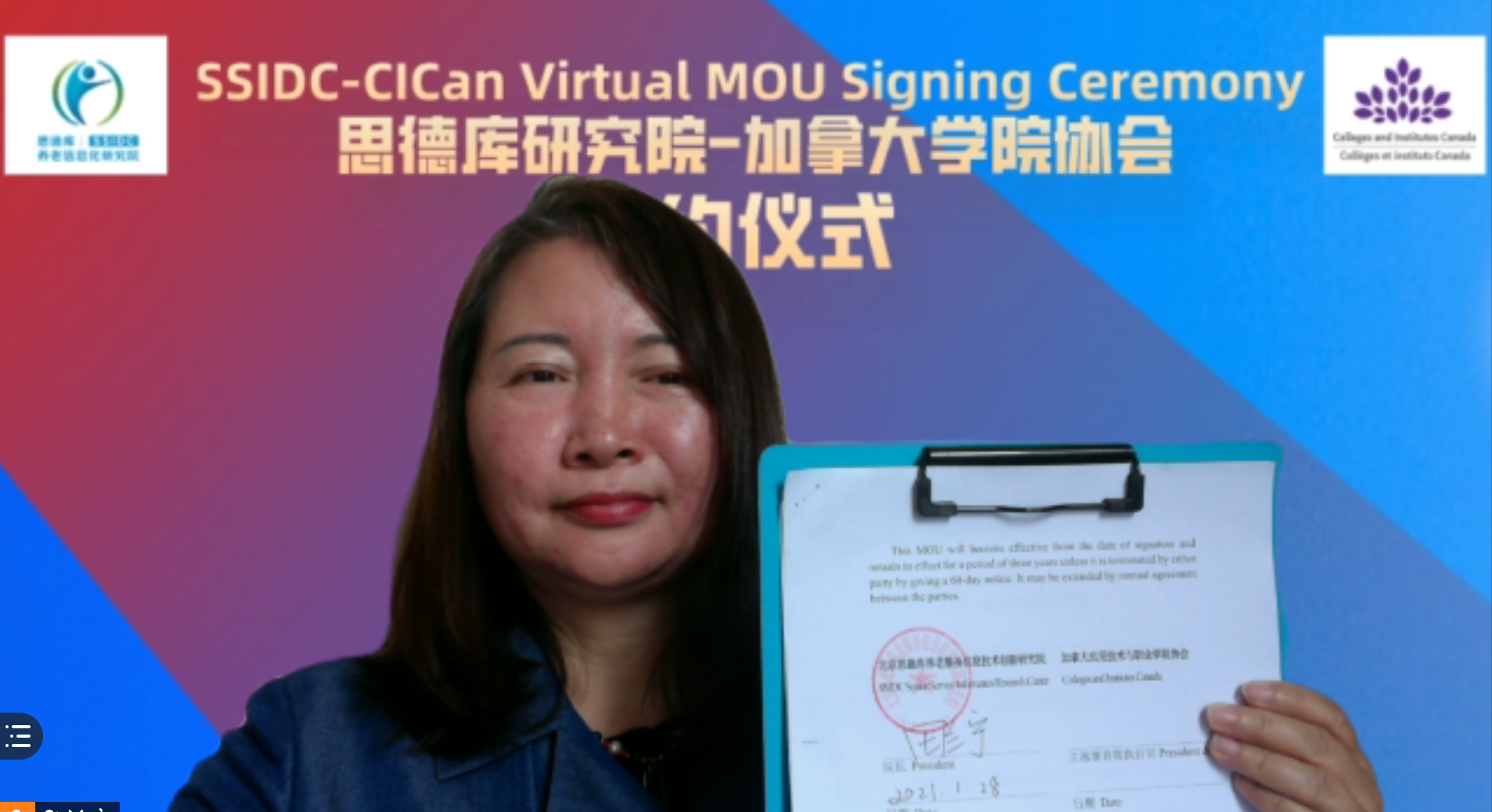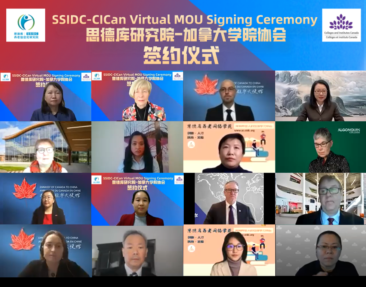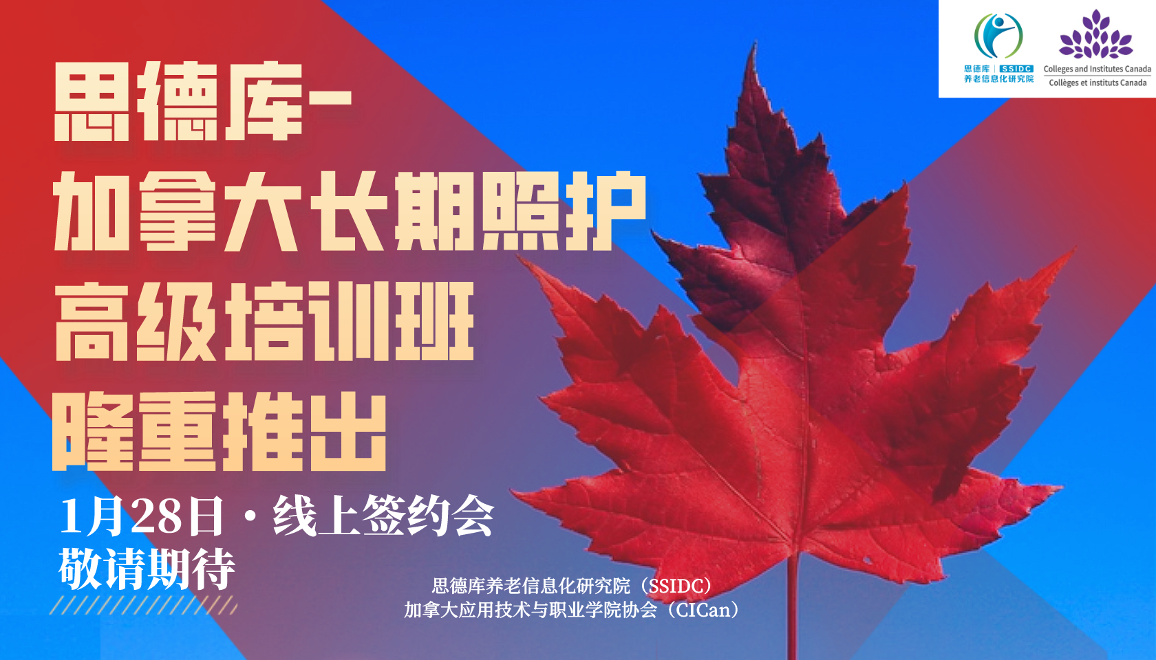2021年1月28日,思德库养老信息化研究院与加拿大应用技术与职业学院协会战略合作协议签约仪式在线举办。签约后双方宣布启动首个重要合作项目“思德库-加拿大长期照护高级培训班”。