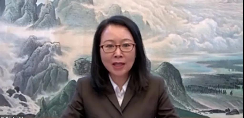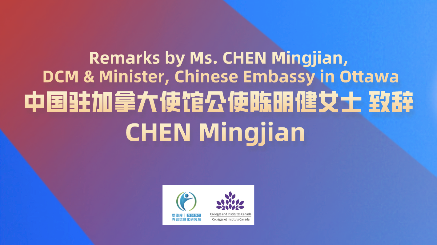 思德库养老信息化研究院与加拿大应用技术与职业学院协会战略合作协议签约仪式在线举办,中国驻加拿大大使馆公使陈明健女士发表讲话。
