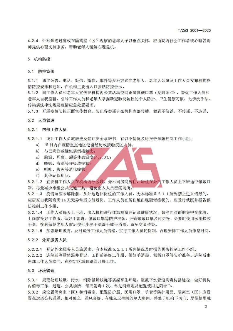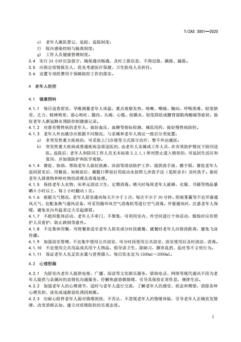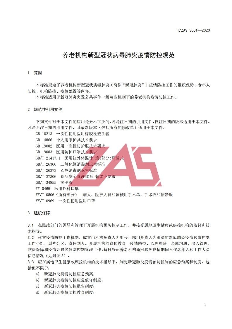 ZAS《养老机构新型冠状病毒肺炎疫情防控规范》团体标准正式发布。